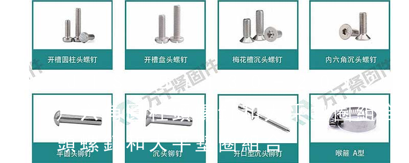 1.機(jī)螺釘 2.自攻螺釘 3.鉆尾螺釘 4.墻板釘 5.纖維板釘 6.木螺釘7.六角木螺釘 8.不脫出螺釘 9.組合螺釘 10.微型螺釘 11.家具螺釘 12.電子螺釘頭型:1.六角頭(hexagon head) 2.六角頭法蘭面(hexagon head with flange) 3.